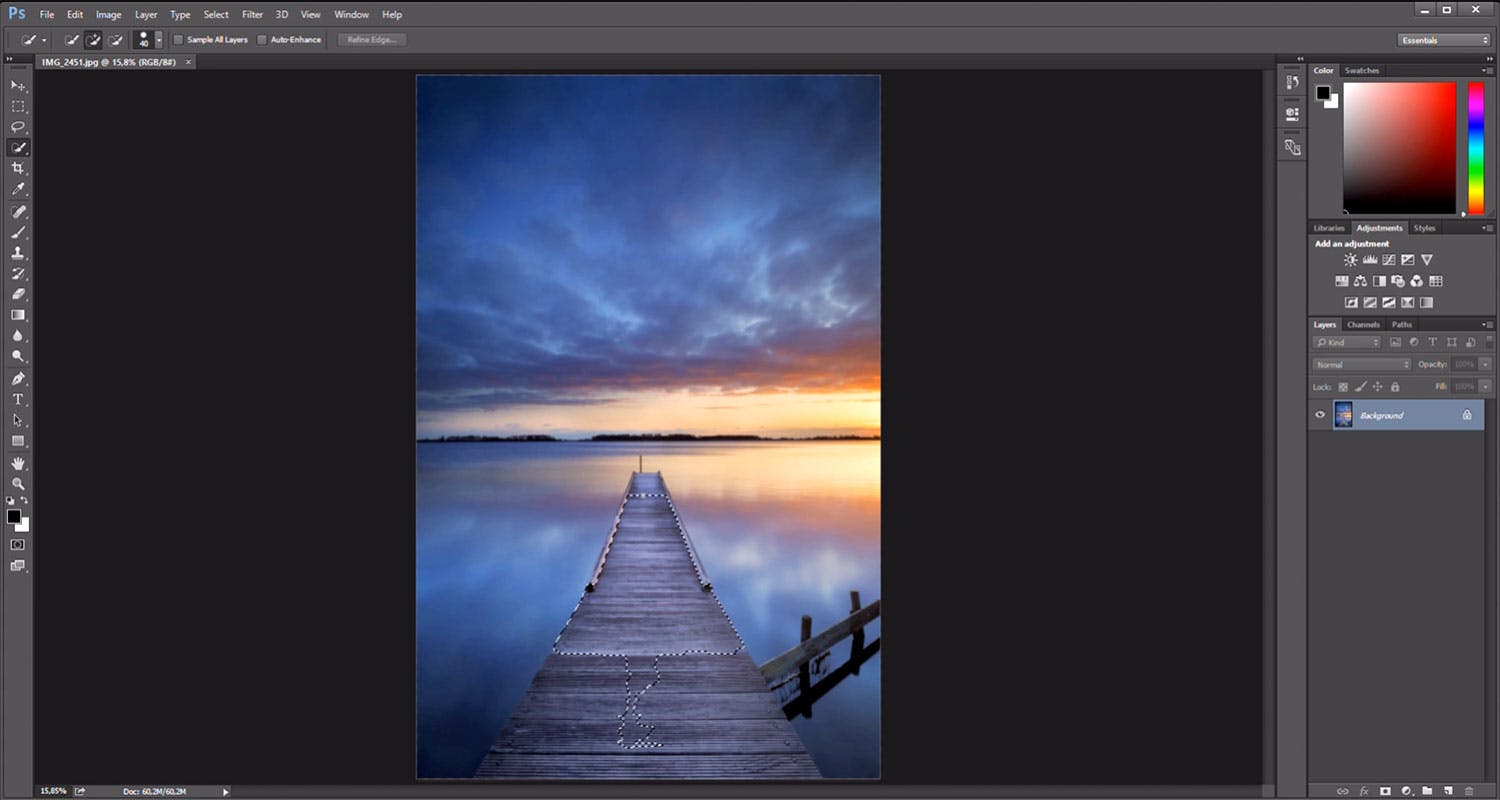 I Photoshop er det veldig lett å velge ut et område med verktøyet Quick Select. Har du like linjer kan du bruke det sammen med Polygon Lasso Tool. Her viser vi hvordan du bruker verktøyene i forbindelse med kurset "Juks deg til et gråfilter," i blad 3/2016.