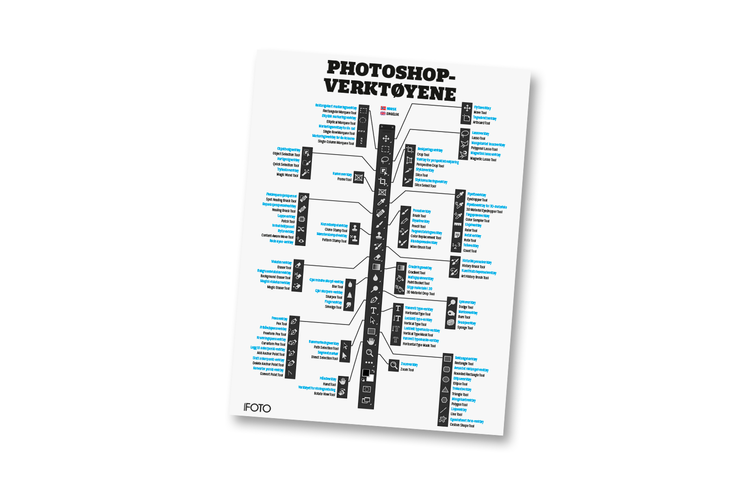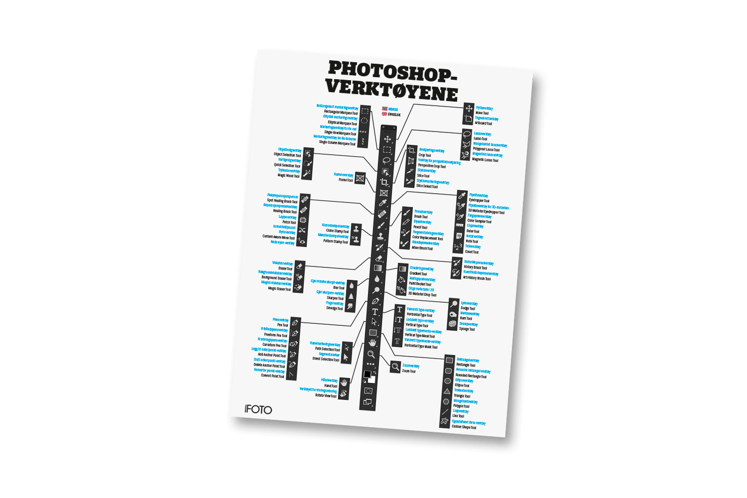 Photoshop inneholder rundt 70 verktøjy, som er redskap du bruker direkte på bildene dine.