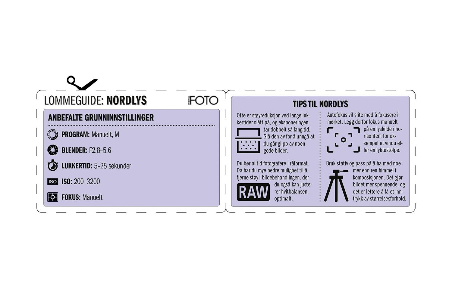 Denne lommeguiden inneholder blant annet tips til hvordan du kan fange så mye som mulig av nordlyset når det dukker opp. Vi hjelper deg også med kamerainnstillingene.