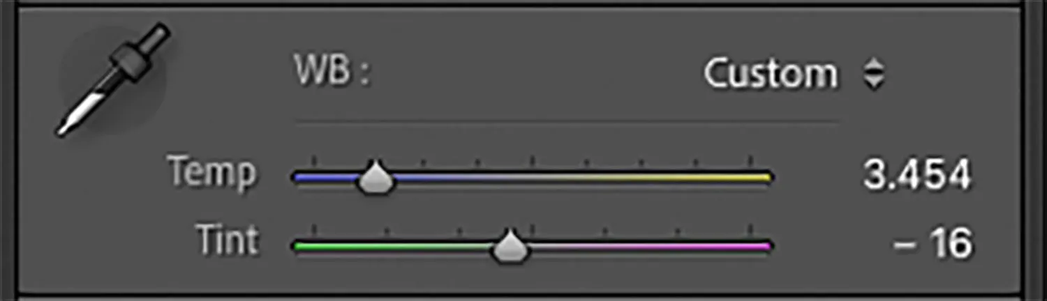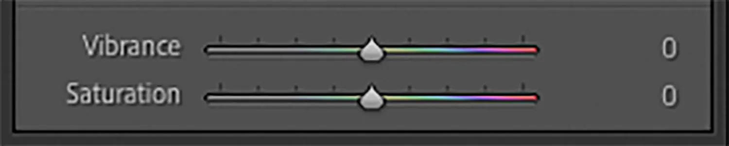 Juster hvitbalansen slik at fargene ser riktige ut. Det gjør de vanligvis rundt 3000–4000 K. Dra Tint mot det grønne og forsterk Vibrance for å styrke fargene uten at de blir overmettede.