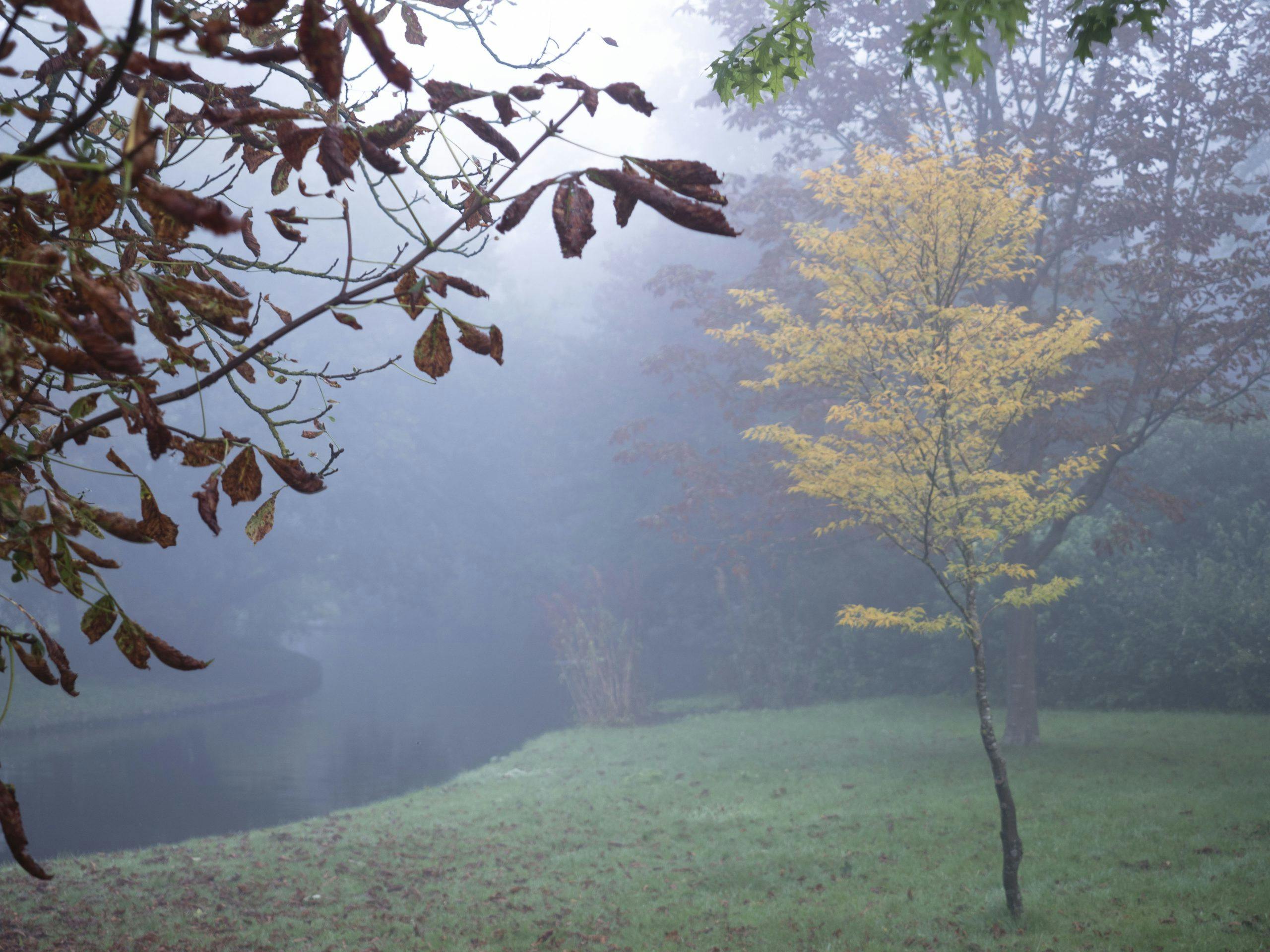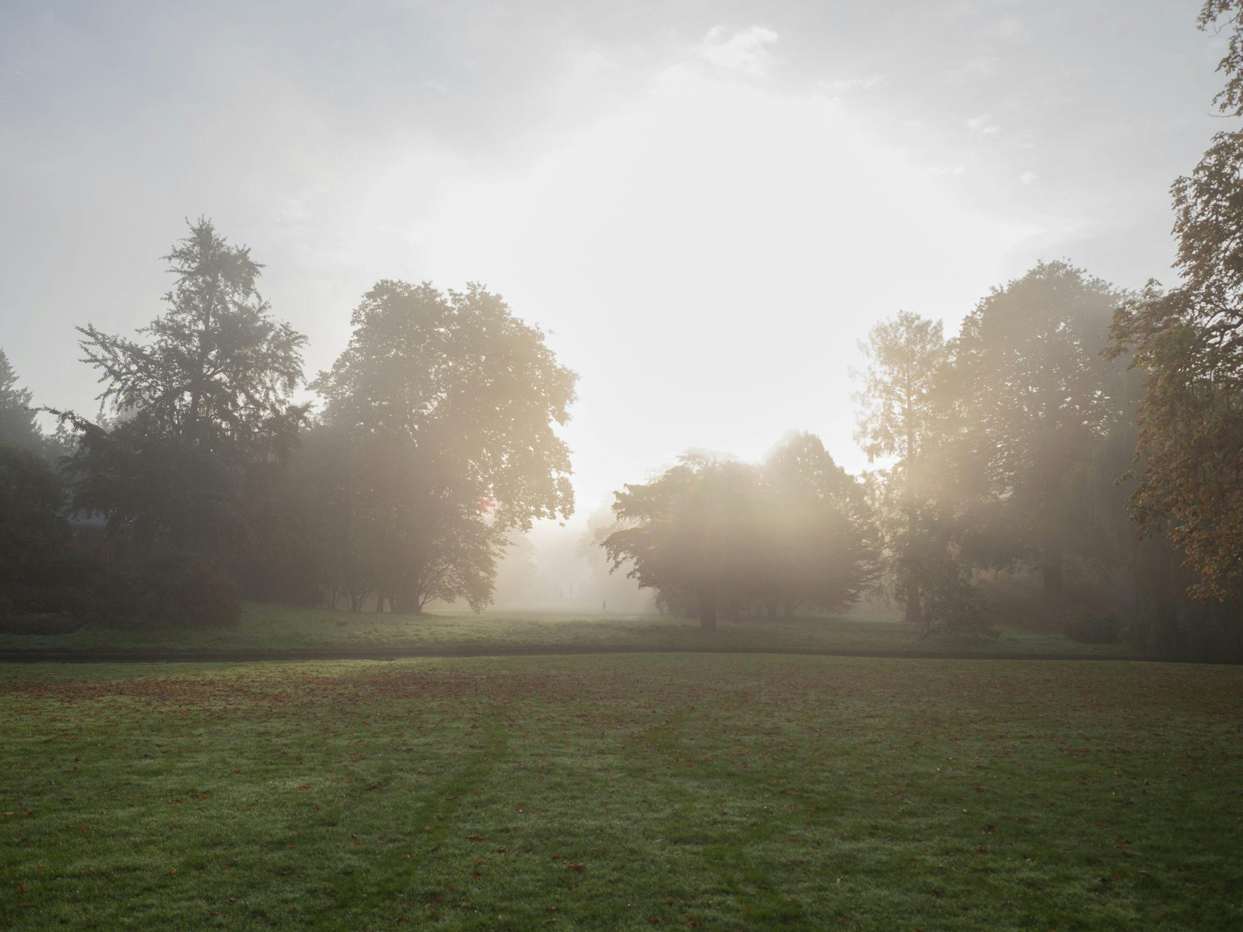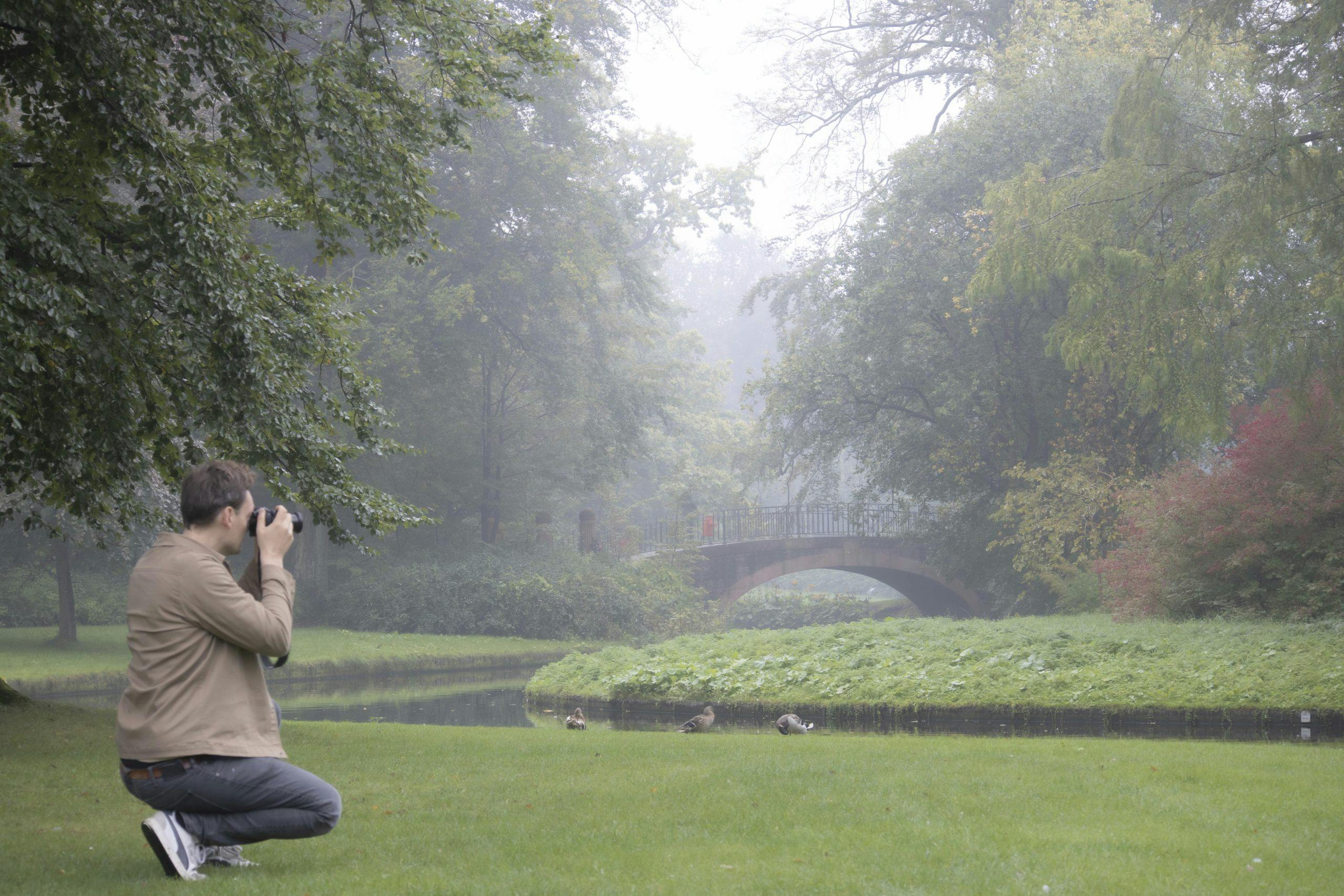 En tidlig morgen la tåken seg endelig tett over lokalområdet. Kameravesken var ferdig pakket og klar til bruk. Vi slengte den på ryggen og satte kursen mot en park i nærheten.
