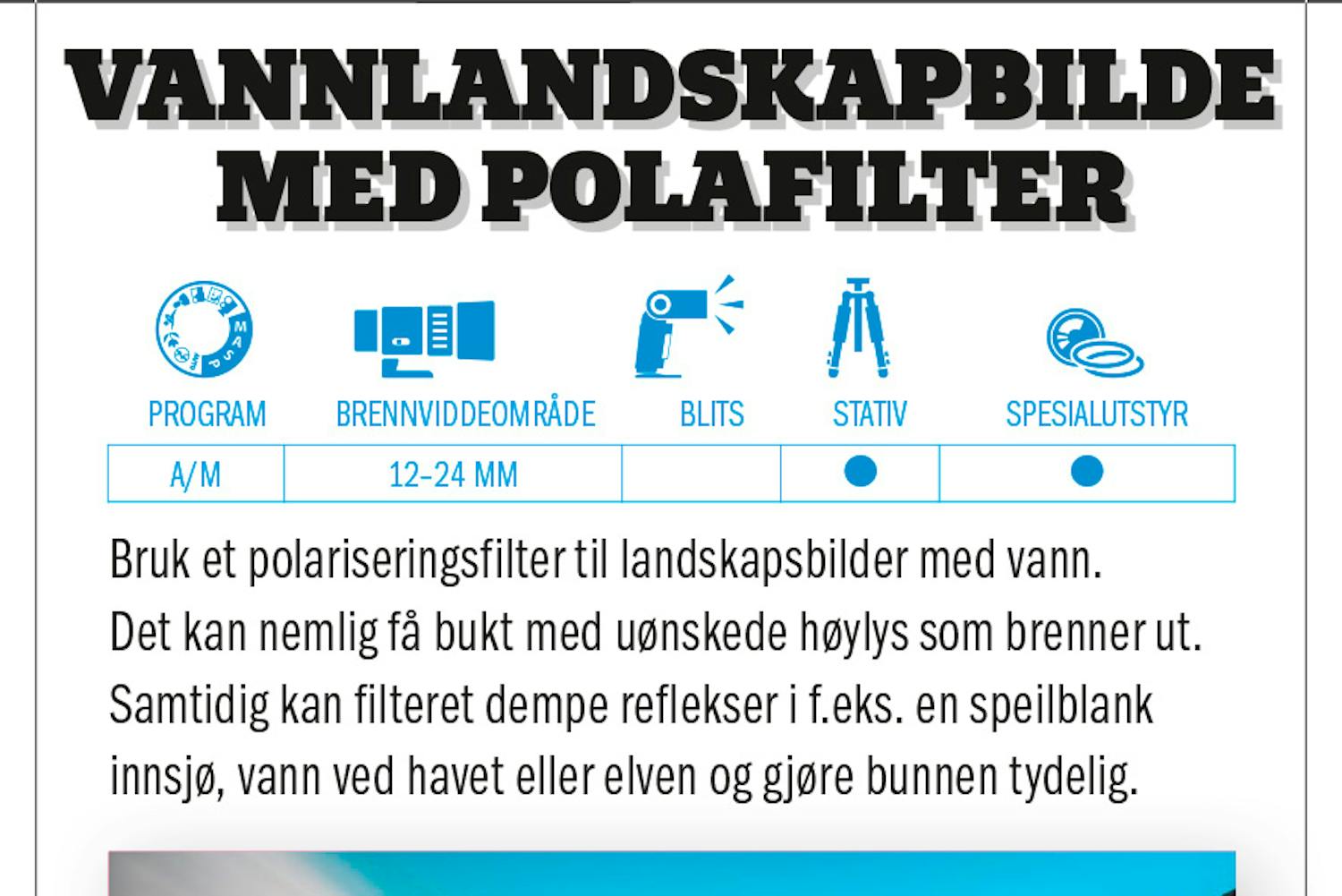 - Vannlandskapbilde med polafilter