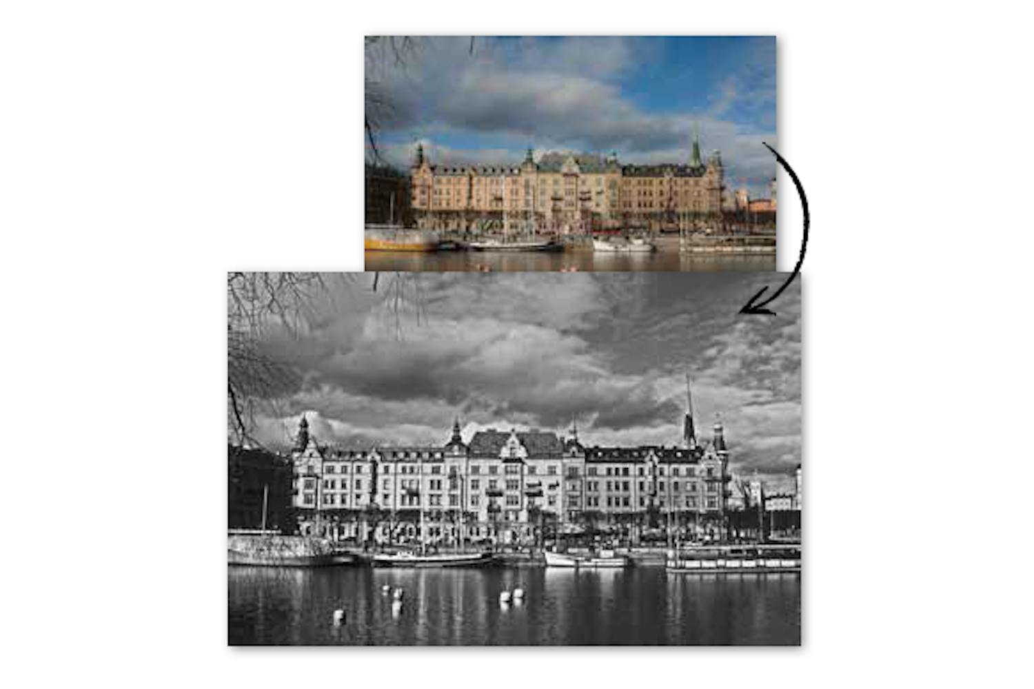 Selv om bybildet ble tatt i farger, kan man få forrykende resultater ved å konvertere til svart-hvitt i Elements. Her viser vi hvordan du oppnår en fin balanse mellom lys og skygge.