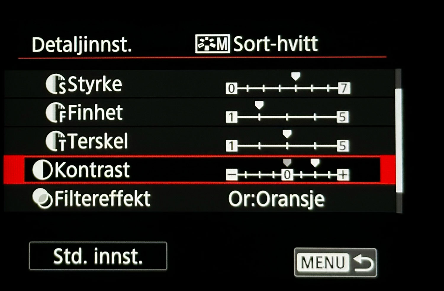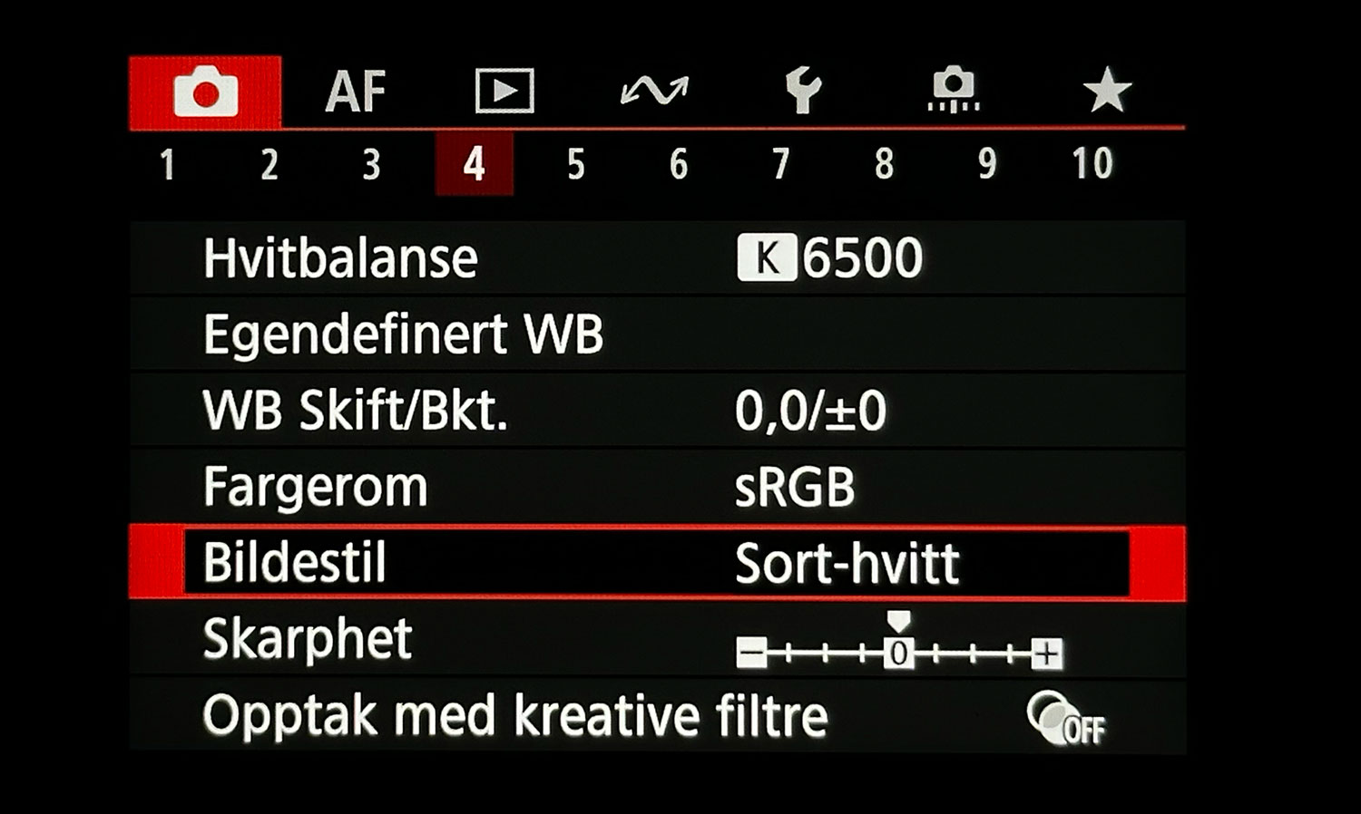 Vi stilte kameraet inn til å ta bilder i svart-hvitt. Denne innstillingen påvirker bare jpeg-filen. Hvis du også velger å ta bilder i råformat, lagrer du også en nøytral fargeversjon av bildet. Dette er et godt sikkerhetsnett hvis du vil ha optimale betingelser for redigeringen.