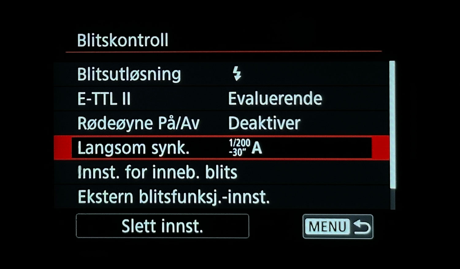 Dette er ofte for lenge til å fotografere håndholdt, men fordi kameraet var på et stativ og vi aktiverte utløseren eksternt, klarte vi å ta et skarpt bilde. Autofokus kan slite med å fokusere i så svake lysforhold, men fordi det var lys på ansiktet, klarte kameraet å fokusere på øye