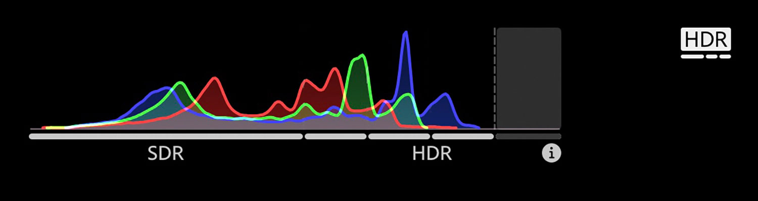 - Med en markering i Preview For SDR Display kan du få et inntrykk av hvordan bildet vil se ut når du ser det på en vanlig SDR-skjerm. Med glidebryterne nedenfor kan du justere uttrykket bildet får når det blir vist på SDR-skjermer og i SDR-programmer, uten at HDR-visningen blir påvirket.