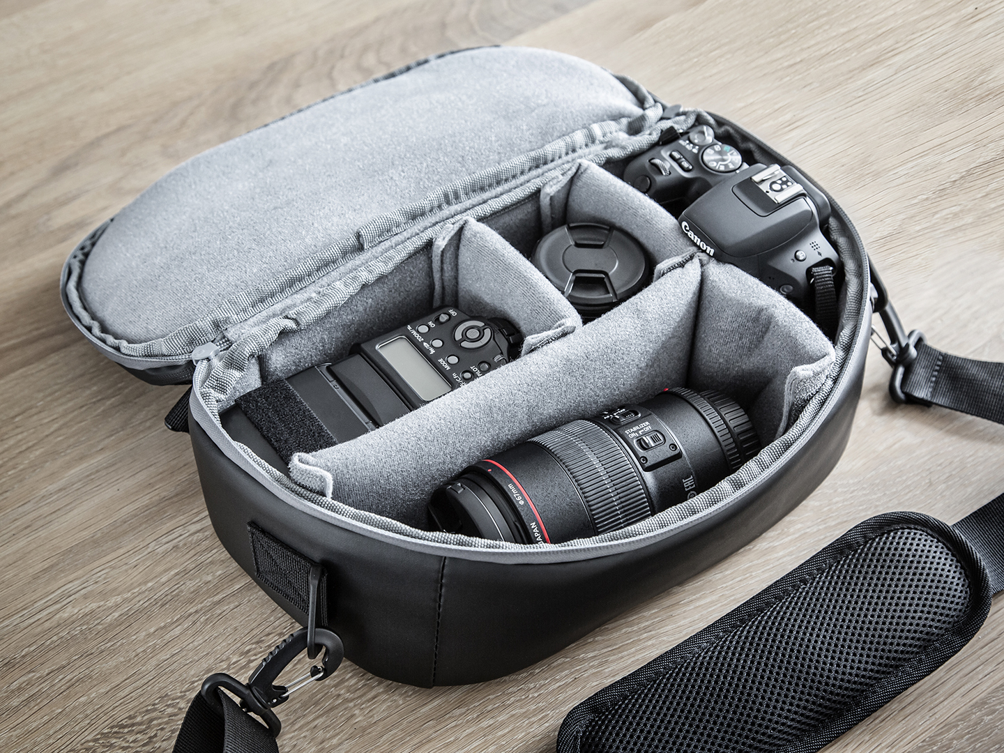 Ved første øyekast ser den ut som en liten oppbevaringsboks på 7 liter som enkelt får plass i kofferten. Den har plass til kameraet ditt, et par objektiver og tilbehør som ladere, batterier og kabler.