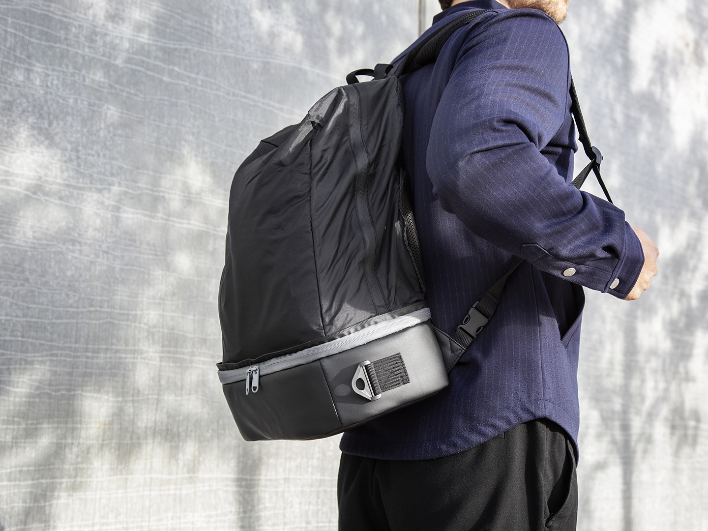 Nå har du både utstyret ditt godt beskyttet i bunnen og god plass til jakke, matpakke og mye mer øverst. Dermed kan du gå på jakt etter dagens motiver og opplevelser. Du får altså to vesker i én med mange smarte detaljer som f.eks. tyverisikring.