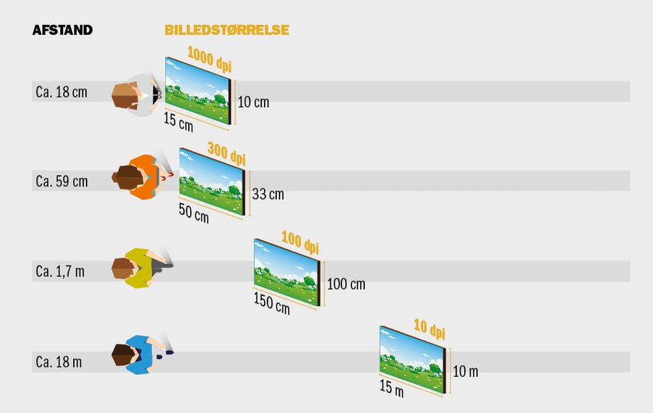 Det er nemlig slik at jo lenger unna et bilde du kommer, desto lavere dpi trenger du. Menneskeøyet kan ikke se forskjellen på det uansett.