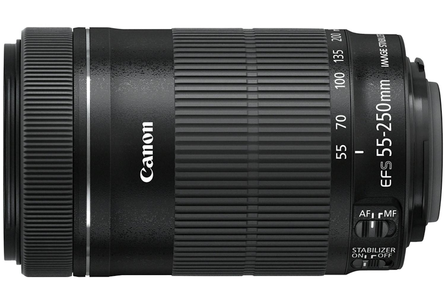 EF-S 55-250mm F4.0-5.6 IS STM har innebygd bildestabilisering, og passer til kameraer med APS-C-sensor, der brennviddeområdet tilsvarer 88-400 mm. I forhold til det eksisterende objektivet med samme brennviddeområde kan man nå fokusere nærmere, da den nye optikken bare krever en avstand på 85 cm for å stille skarpt, der den tidligere modellen må ut på 110 cm. Dessuten roterer ikke frontlinsen, og det er en fordel når man monterer f.eks. pol-filtre. Objektivet har i det hele tatt fått ny optisk design og inneholder nå 15 linser fordelt på 12 grupper, mens den tidligere modellen hadde 12 linser i ti grupper.
