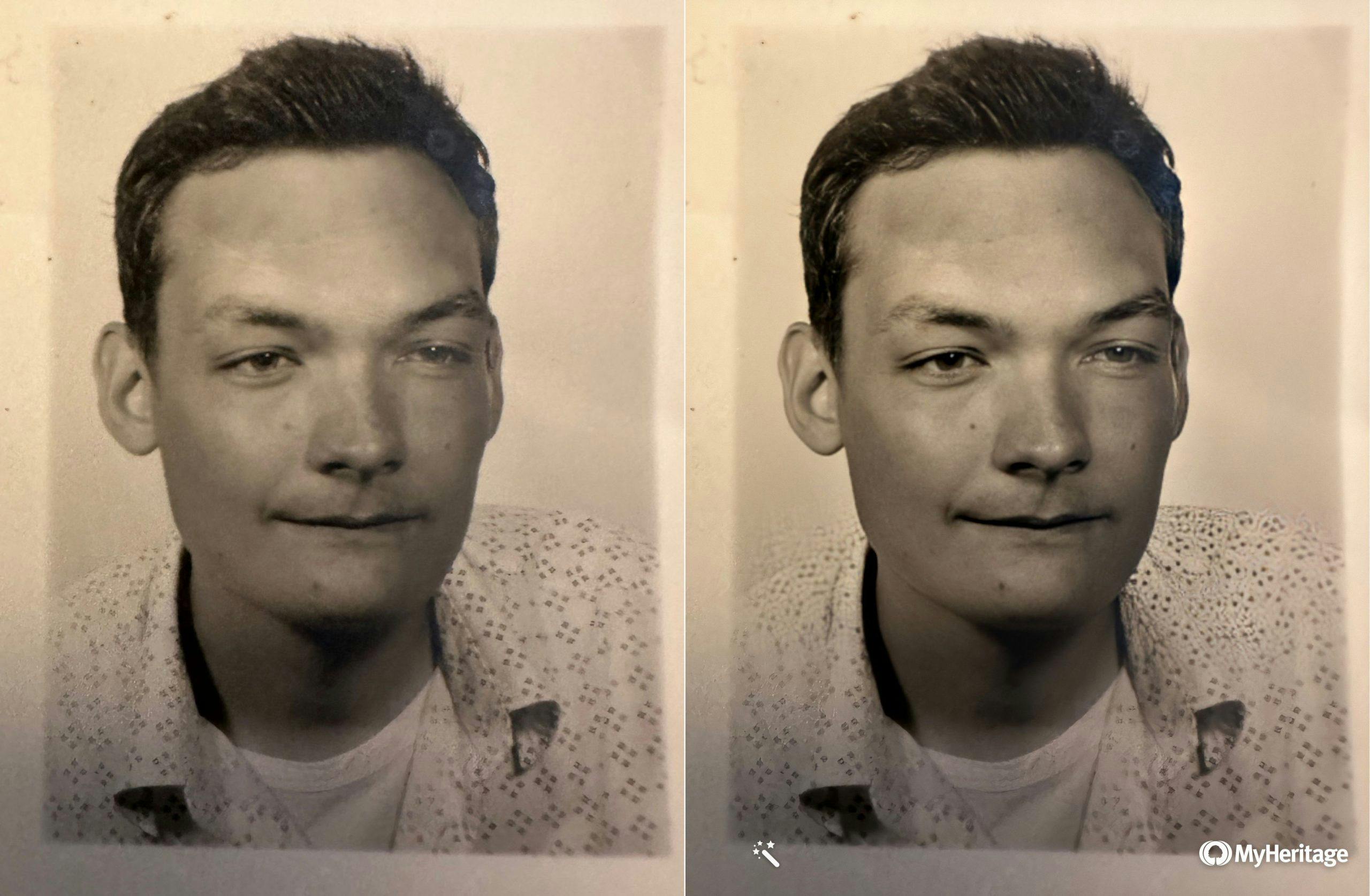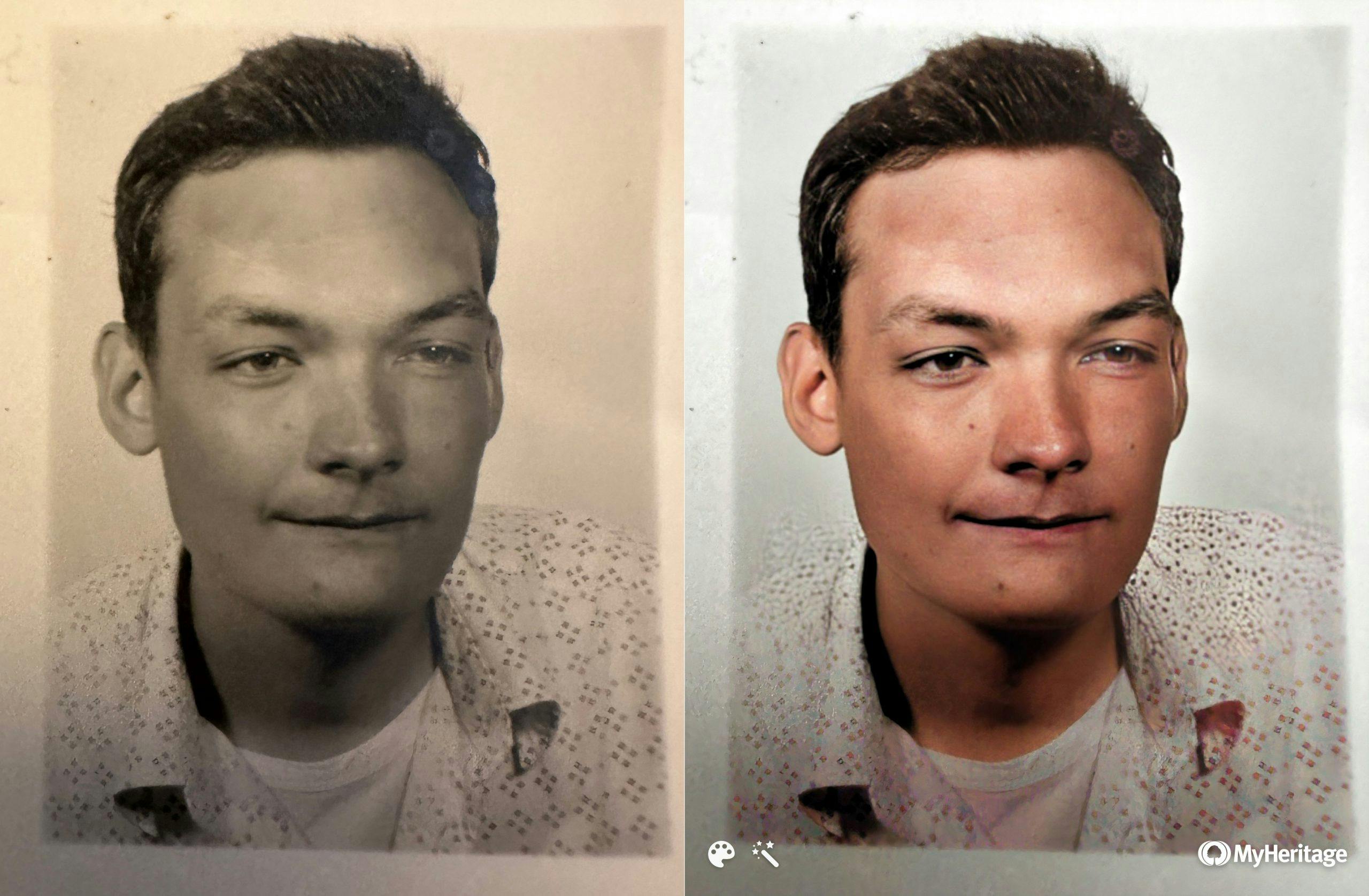 Til slutt prøvde vi Animate-funksjonen. Og det var her ting ble litt foruroligende. Etter å ha klikket på menypunktet og ventet noen sekunder igjen, ble det tjue år gamle bildet vekket til live.