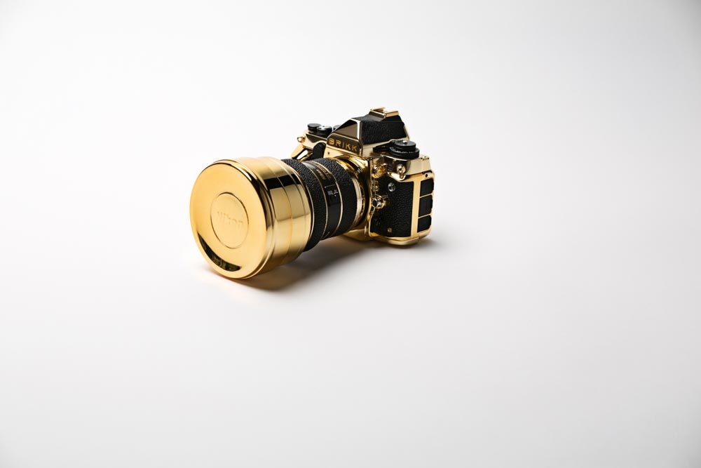 Gullbelagt kamera fra Brikks koster det samme som et par småbiler, men så er det også belagt med to lag hvitt gull i 24 karat. Det er snakk om et Nikon Df med objektivet Nikkor 14-24mm F2.8, begge deler i gull. Håndtak, zoomring og fokusring er laget i lær.
