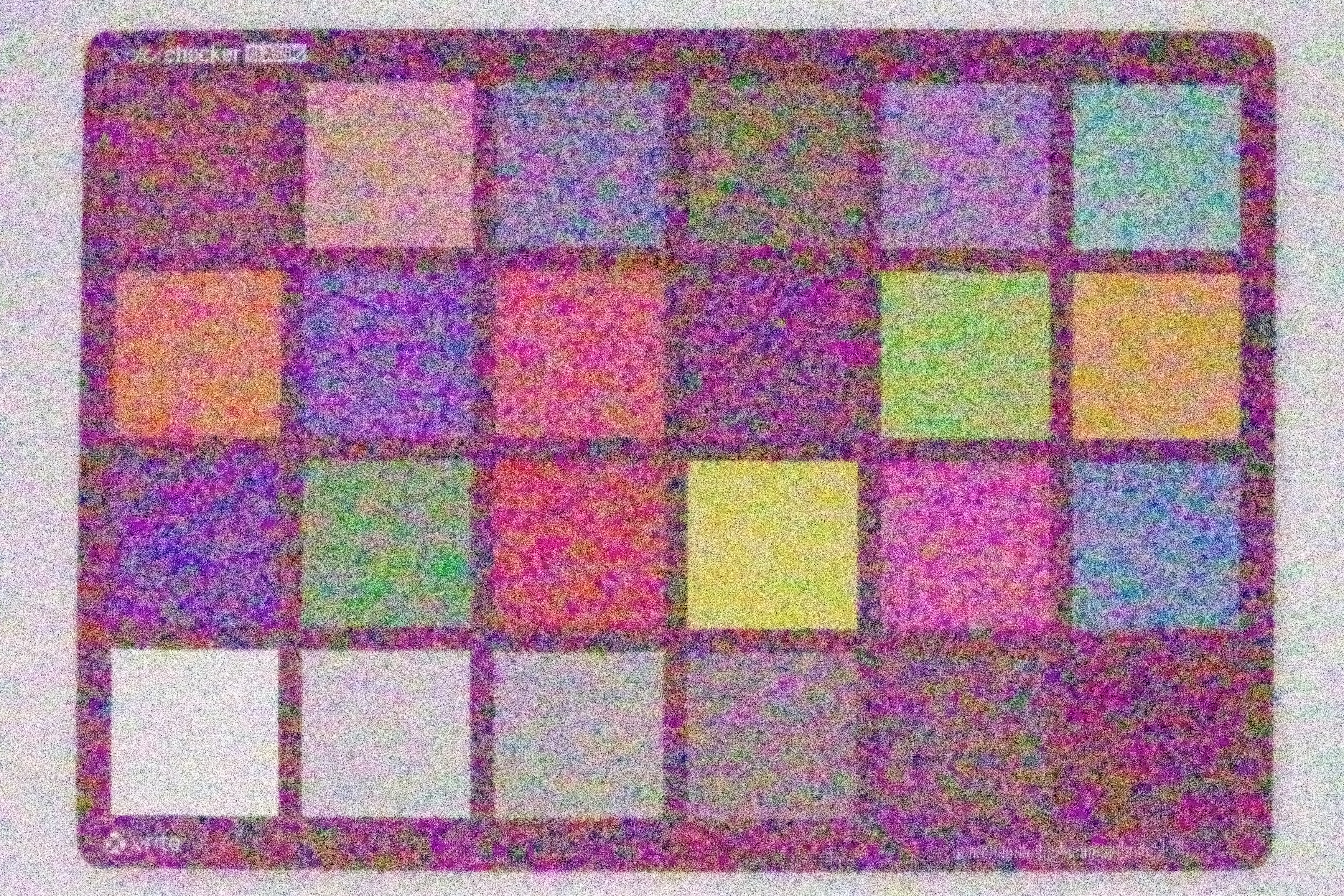 Bilder av fargekart er tatt på henholdsvis laveste ISO-verdi uten ISO-utvidelse, ISO 1600, ISO 6400 og høyeste mulige ISO-verdi med utvidelse.
