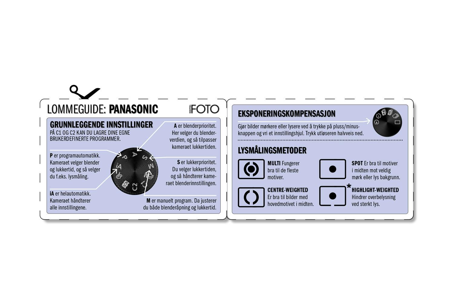 I denne lommeguiden hjelper vi deg med de viktigste innstillingene til kameraer fra Panasonic. Du får hjelp med å velge opptaksprogram, eksponeringskompensasjon og lysmåling.